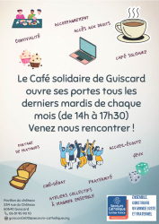 Le Secours Catholique met en place un "Café Solidaire" pour tous les habitants de la commune et des alentours de Guiscard qui souhaitent partager un moment agréable au Pavillon du Château chaque dernier mardi du mois.