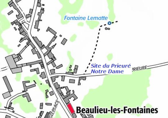 Notice historique sur Beaulieu-les-Fontaines par Leroy-Morel. 1858) héritât, en cette région de solitude, d’une terre qui s’étendait tout au long d'un ruisseau, à proximité de trois sources (devenues depuis la fontaine Saint Jean, la fontaine Lematte et la fontaine Saint Pierre).